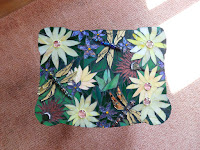 I started taking Mosaics about 4 years ago with Cheryl Cohen in her Holliston studio. I love using all the ephemera that collects in the corners of life! Here, I was learning to cut glass which is a lot easier than I thought it would be. I find mosaics to be a much more relaxing process than painting. Acrylics and watercolor keep me frenzied & guessing at the exact mixture to get me the look I want. Mosaic pieces never really change, except into sizes I control. There's something entirely satisfying in finding and fitting shapes like a puzzle. And gluing is just so zen-like.